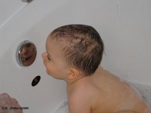 Take a look at this image that was taken by Peter’s Grandfather, Pat. Take a look at the sense of wonder in Peter’s eyes as he looks at his own image. There he sits in the tub totally in awe at his own reflection. I would like to think that he sees himself they way God sees him – beloved.