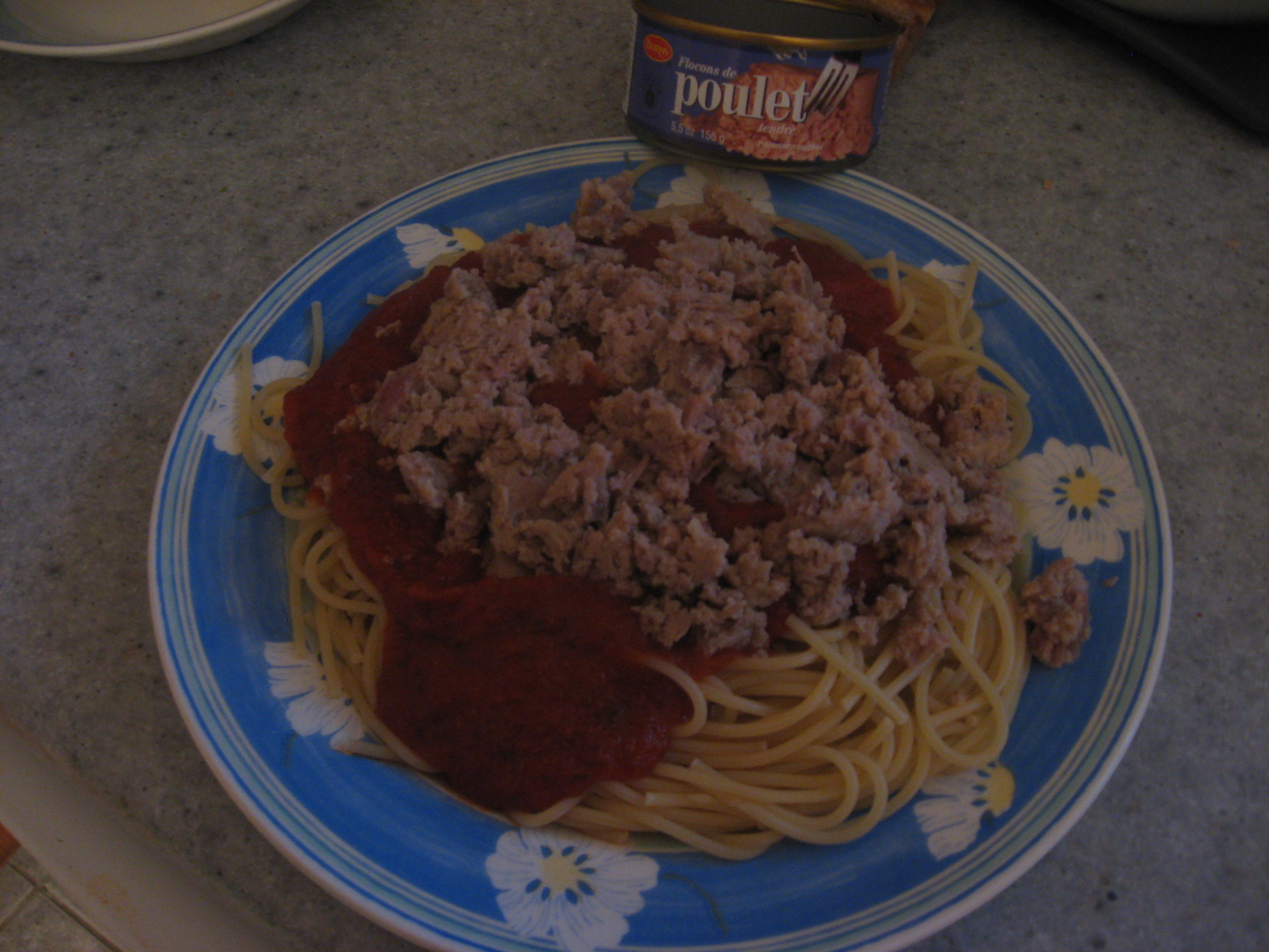 Well, I am full again. Supper was ok. My choice was to eat leftover from last night’s casserole (but I am saving this for Thursday) or to make some spaghetti. I decided to have the latter. The lack of good meat is a problem. I did have a can of chicken left so I mashed it up and served it on top of the pasta and sauce. It was not too bad. I could not finish the ‘meat’ however. The consistency was a problem.