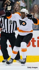 Last night there was a preseason NHL Hockey game between the Philadelphia Flyers and Detroit Red Wings in London, Ontario at the John Labatt Center. The game went to a shootout. One of the shooters was Flyer forward Wayne Simmonds. Now, Simmonds was a big offseason acquisition in a blockbuster trade with the Los Angeles Kings. Simmonds is a great young player with a great future in the league. As he was on his shootout attempt a fan threw a banana on the ice in his path. Simmonds also happens to be one of about thirty players who are of African American or African Canadian descent.