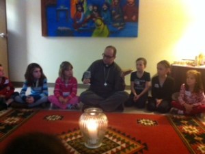 This afternoon I had the privilege to spend half an hour in the Walk Through Holy Week program at St. Mark’s by-the-Lake. The kids learn about each of the key days in Holy Week from Palm Sunday to Easter Sunday. My part was to sit with them and talk about the Last Supper and what Jesus was doing on that night with his friends. Before they came to the table (a rug on the floor) they were taught about the foot-washing. As a visible symbol they kids all placed their feet in muddy paint and walked across a canvass. Their first footprints were bold, dirty and dark. As they neared the far edge of the mat their footprints were fait and nearly clear as the dirt had worn away. What bit of dirt was left was then washed off by one of their little friends. They created a beautiful painting with their feet that displays well the nature of how God helps us be cleansed for all the muck and grime as we walk on our journey. As we sat around the ‘table’ afterward and shared bread and ‘wine’ I was really taken by the little faces and their awe with the story of the Last Supper. Had me thinking – do they understand this? Then I thought – wait a minute – Do I understand this? That got me thinking about Merton and the notion that the love which is poured out in Jesus is beyond our comprehension and beyond our understanding. The Sacrament of the Body and Blood of Jesus is not about understanding. If it were most of us would be refused at the table. But the Sacrament is about Love! It is about a saving love that is broken and shared. A redeeming love that is offered each time we quench the thirst of a sister or brother who is parched.