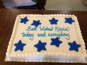Today was also my last Wednesday morning Mass. Wednesdays have become an important part of my weekly spiritual discipline. I love the fact that we gather each week around a simple table, without vestments, without all the extras and break bread together. I love that the prayers of the people are highlighted on Wednesdays. Silence is comfortable for folks on Wednesday. Love is poured out. The peace is a very meaningful act. The time together over lunch after church is equally enriching. We break bread again and commune with one another again. Today the group brought a cake – thank you Grace Forster offering us best wishes.