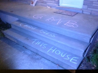 When we were set to go I took some sidewalk chaulk and I chalked the door. This practice which dates back to the Middle Ages, is customary at Epiphany. It is a simple act of marking the door with 20 C + M + B 12. Christus mansionem benedicat – May Christ bless this house.