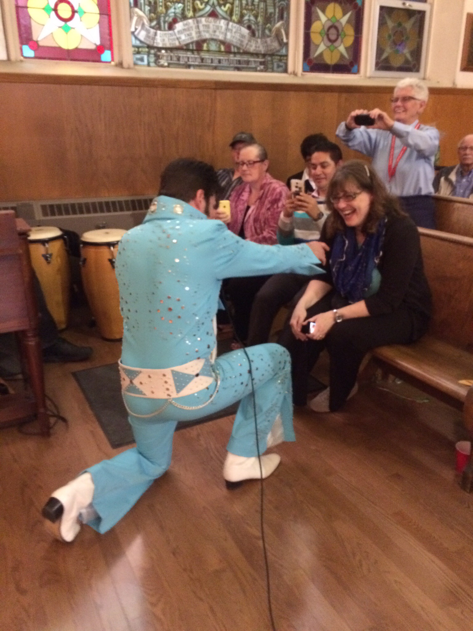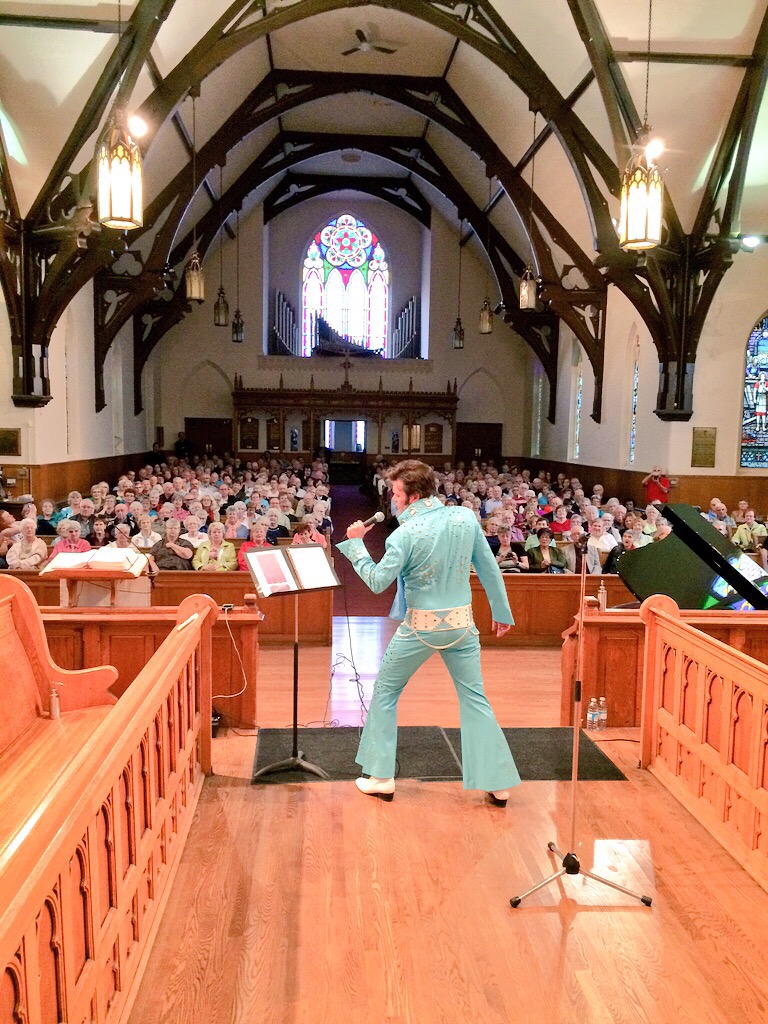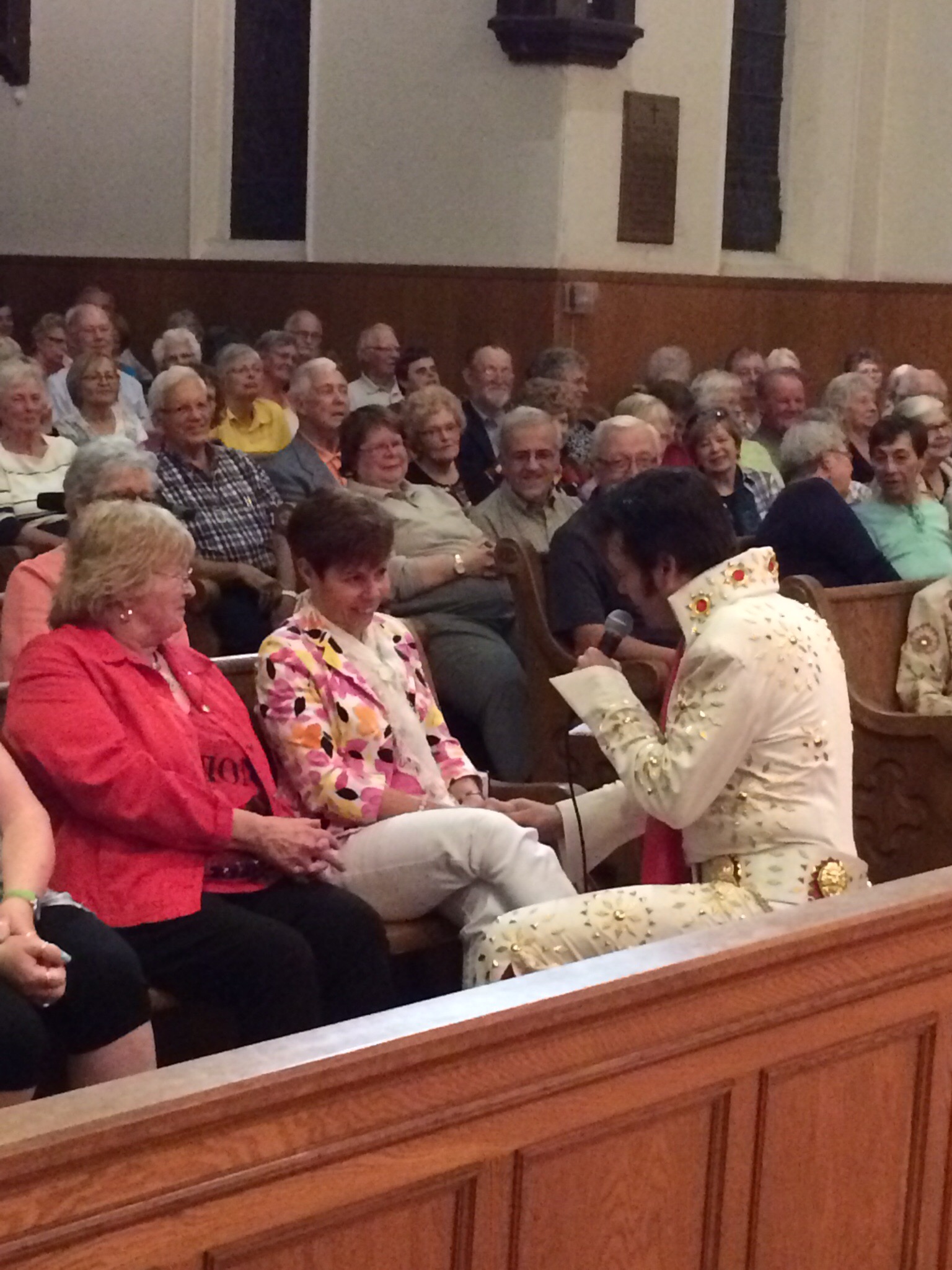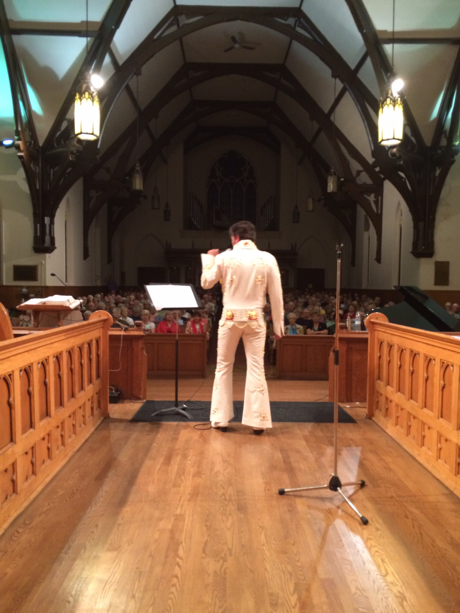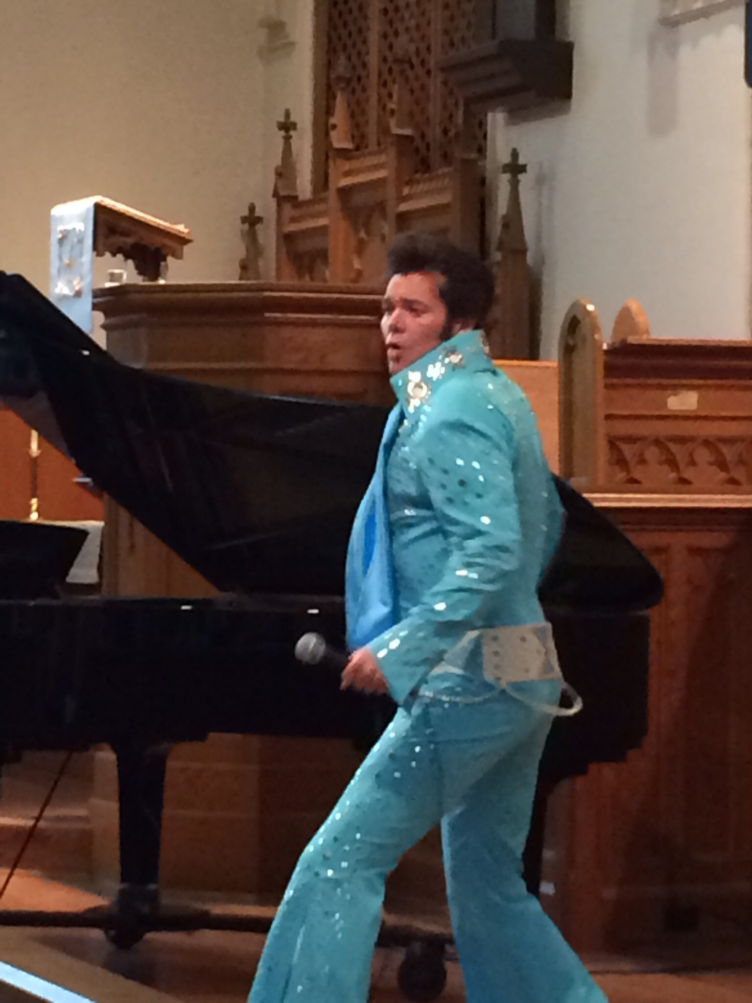 Last night the Rev’s Matt Martin contributed his award winning talent as an Elvis impersonator to help us well exceed that goal. Along with the incomparable Stephen Holowitz, Matt had the sold out crowd of over 300 in the palm of his hands. It was incredible show. It was so wonderful to see the joy in the faces of all who came. All parts of this show were awesome – but the real highlights came when Stephen played the Hammond B3 and the Grand Piano. WOW! At one point the audience was convinced that Jerry Lee Lewis was in the house! Matt Martin has been doing concerts like these for many church causes. He is making a tremendous contribution. Thank you hardly seems adequate.