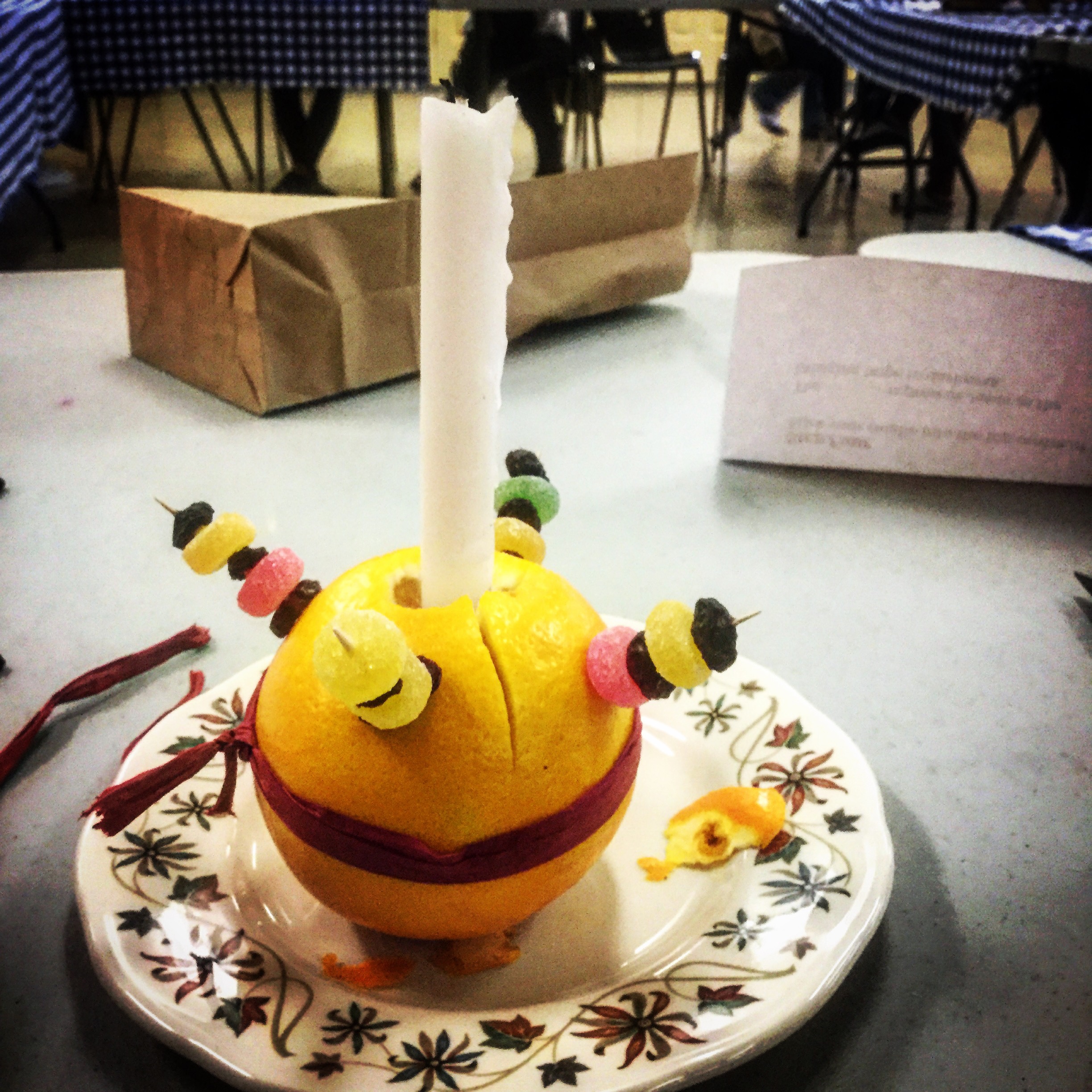 Last Sunday our Children and Youth Minister Sandy Harle introduced us all to a custom known as Christingle. I was so privileged to be given a bag with dried fruits and candies, a red ribbon, an orange and a candle. When I was done, I had made a beautiful creation — a Christingle.